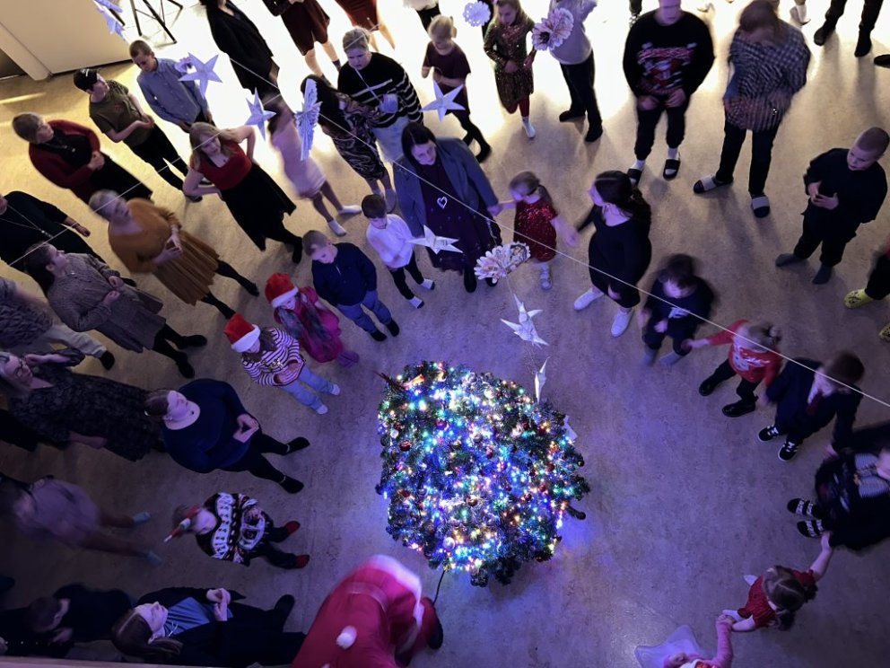 Dansað var í kringum jólatréð og svo kíktu jólasveinar í heimsókn